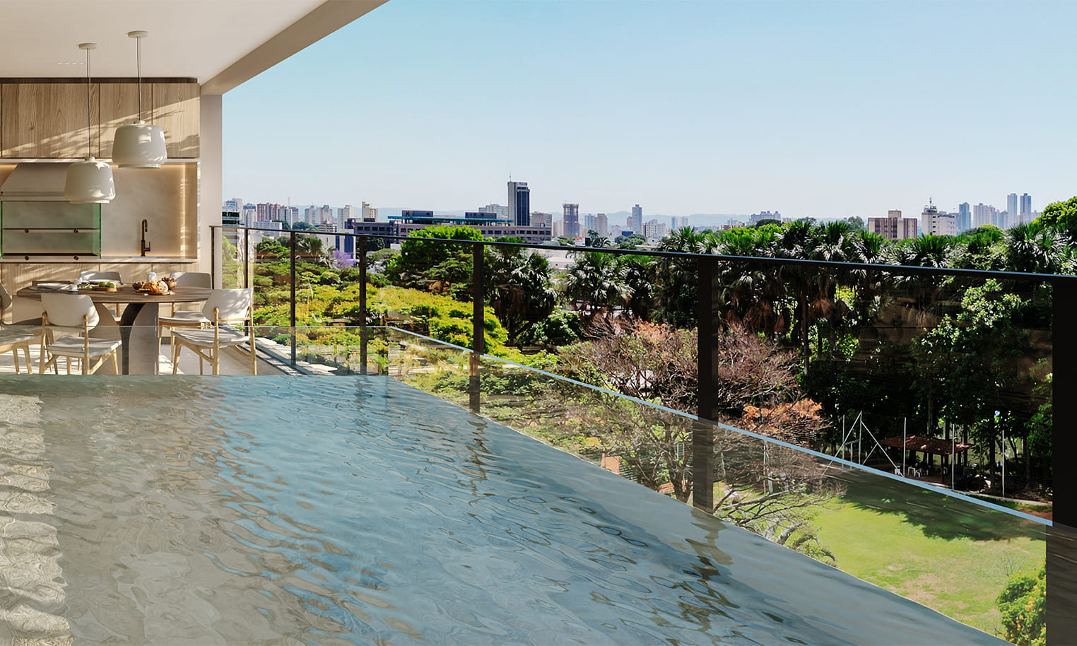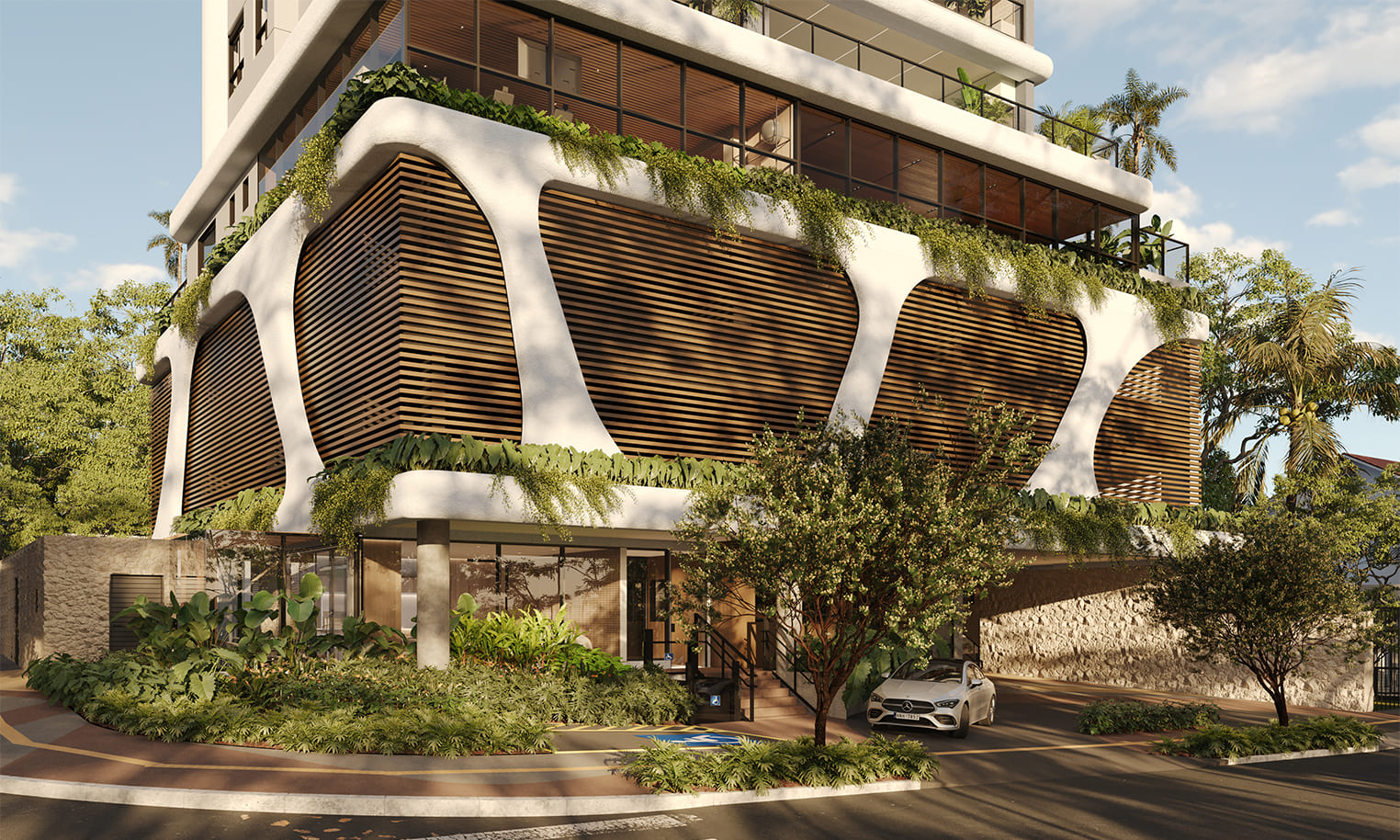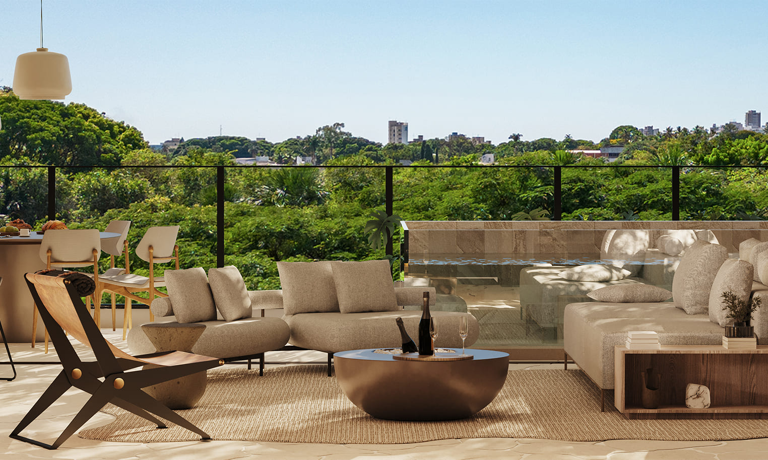 A Cardim Paisagismo assina o projeto, trazendo sua reconhecida expertise em botânica e design natural. Com vegetação 100% nativa, o paisagismo dialoga de forma orgânica com a arquitetura fluida do empreendimento, criando ambientes elegantes, acolhedores e profundamente conectados ao território. A seleção criteriosa de espécies e a composição equilibrada das áreas externas reforçam a sensação de bem-estar e elevam a experiência do morar.