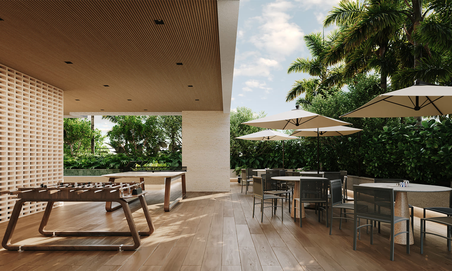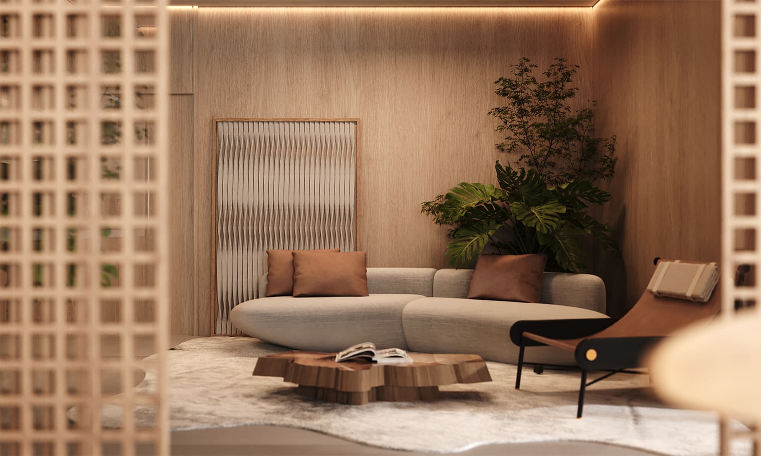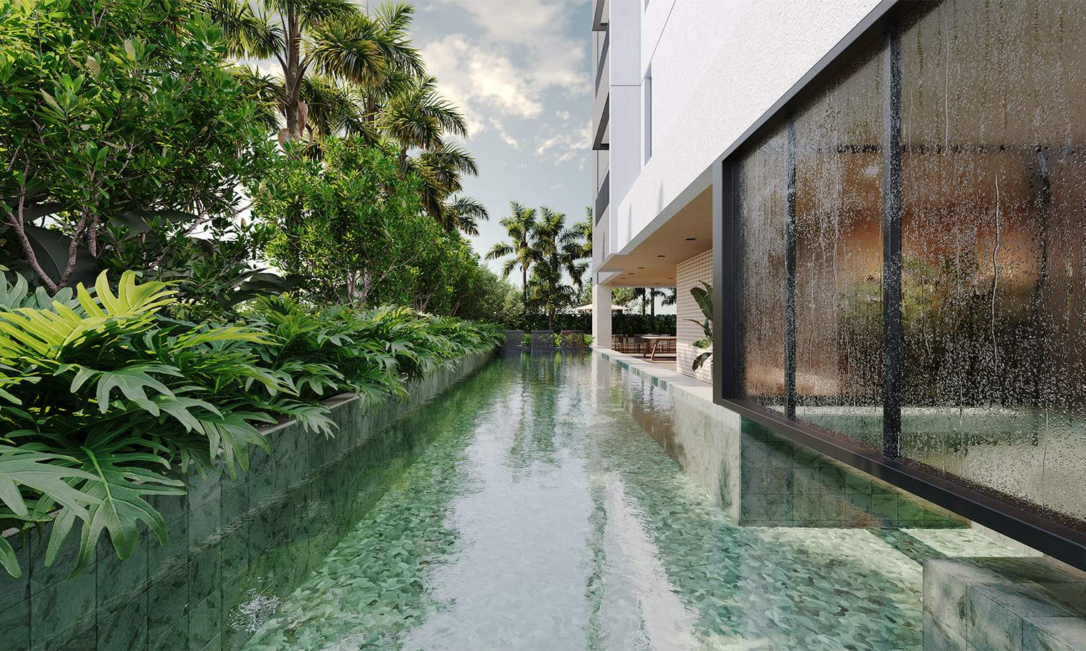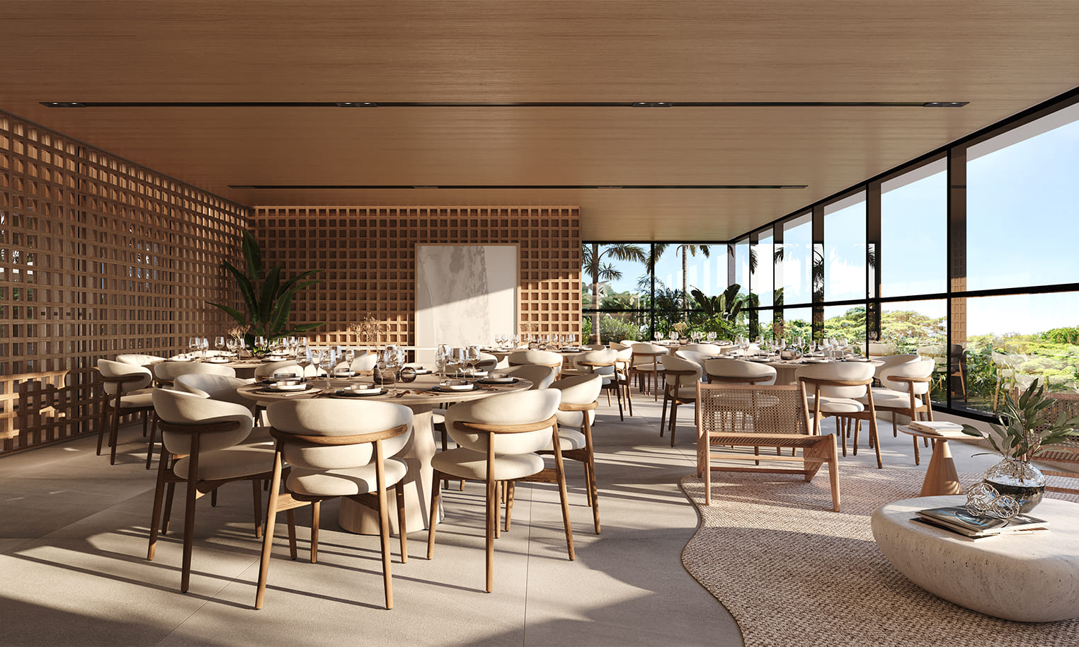 A Cardim Paisagismo assina o projeto, trazendo sua reconhecida expertise em botânica e design natural. Com vegetação 100% nativa, o paisagismo dialoga de forma orgânica com a arquitetura fluida do empreendimento, criando ambientes elegantes, acolhedores e profundamente conectados ao território. A seleção criteriosa de espécies e a composição equilibrada das áreas externas reforçam a sensação de bem-estar e elevam a experiência do morar.