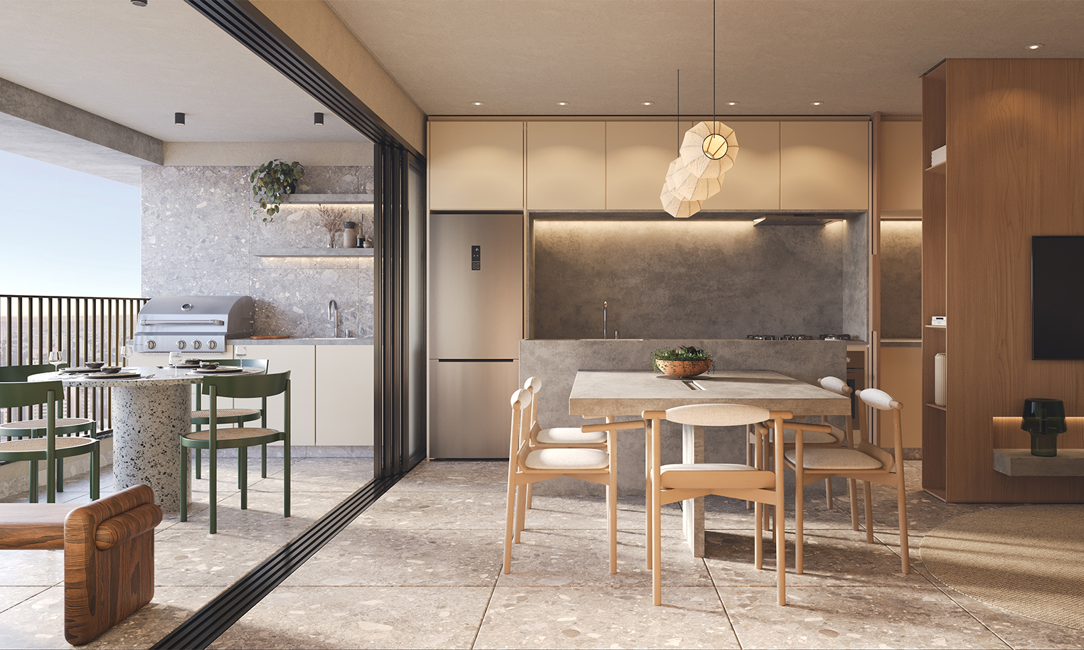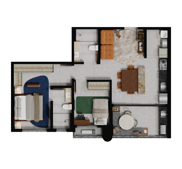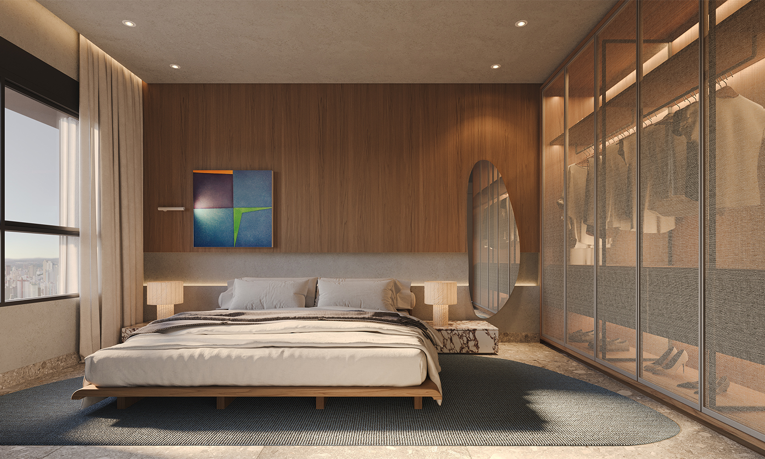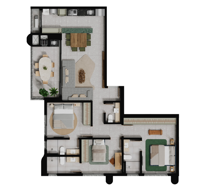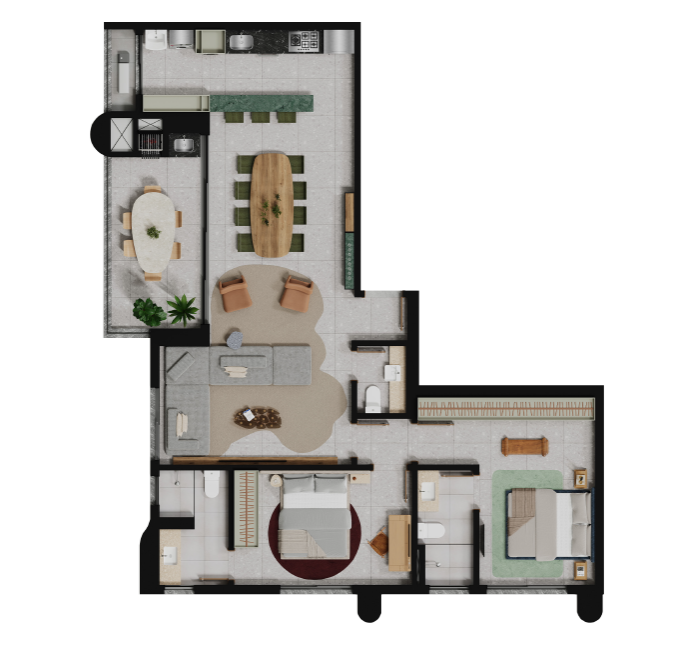 Claudia Albertini assina o decorado do Fascino Consciente com um olhar sofisticado e autoral. Seu trabalho traduz a essência do empreendimento por meio de composições equilibradas, escolhas precisas de mobiliário e uma paleta neutra e contemporânea que valoriza a luz e a arte. Cada ambiente foi pensado para transmitir aconchego, fluidez e elegância, criando uma atmosfera que reforça o caráter escultural e exclusivo do projeto.