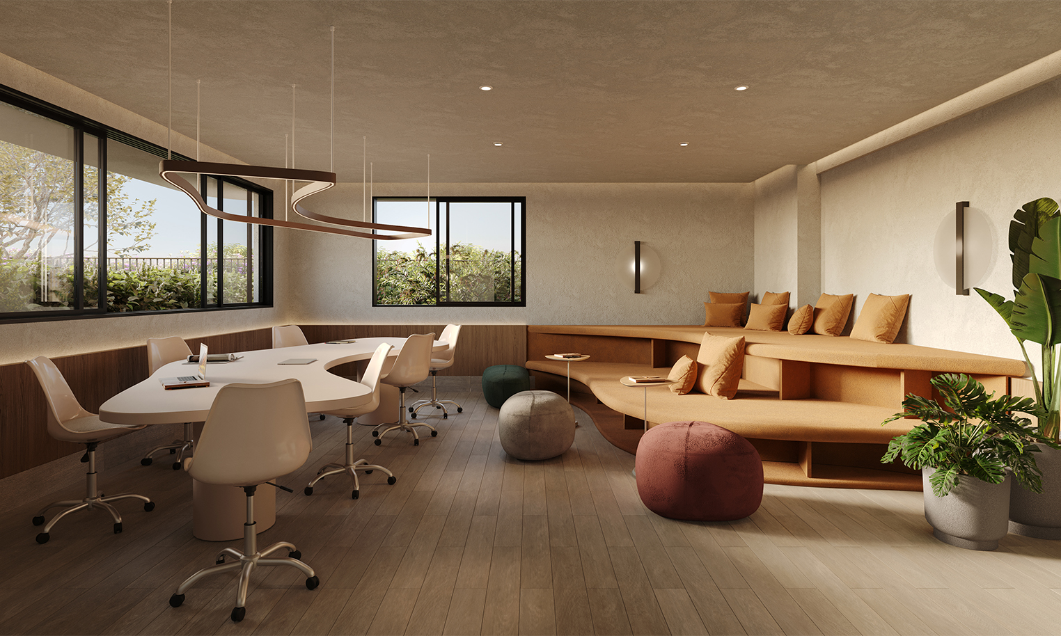 A fluidez da fachada tem origem em seu próprio universo criativo. Reconhecido pelo mobiliário de curvas marcantes, o arquiteto buscou inspiração no icônico banco Mambo para conceber o desenho arredondado que imprime leveza, movimento e identidade à obra. Um encontro entre arte, design e arquitetura que transforma o empreendimento em uma peça escultural na cidade.