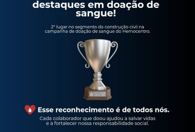 Prêmio de 2º lugar no segmento da construção civil na campanha de doação de sangue do Hemocentro.