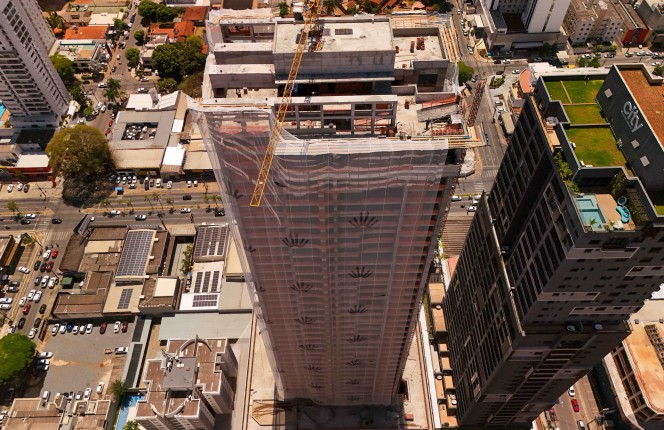 803,53 m² de paisagismo sendo 1/3 de área verde						 Academia suspensa, a 122 metros de altura, com vista panorâmica em 180° de Goiânia